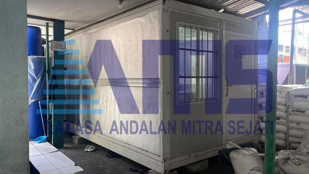 Laboratorium ini menggunakan tipe Foldable Container House. Dengan proses kontruksi yang cepat dan mudah, bangunan ini digunakan dengan nyaman dan aman bagi para pekerjanya untuk proses pengecekan barang kemasan.