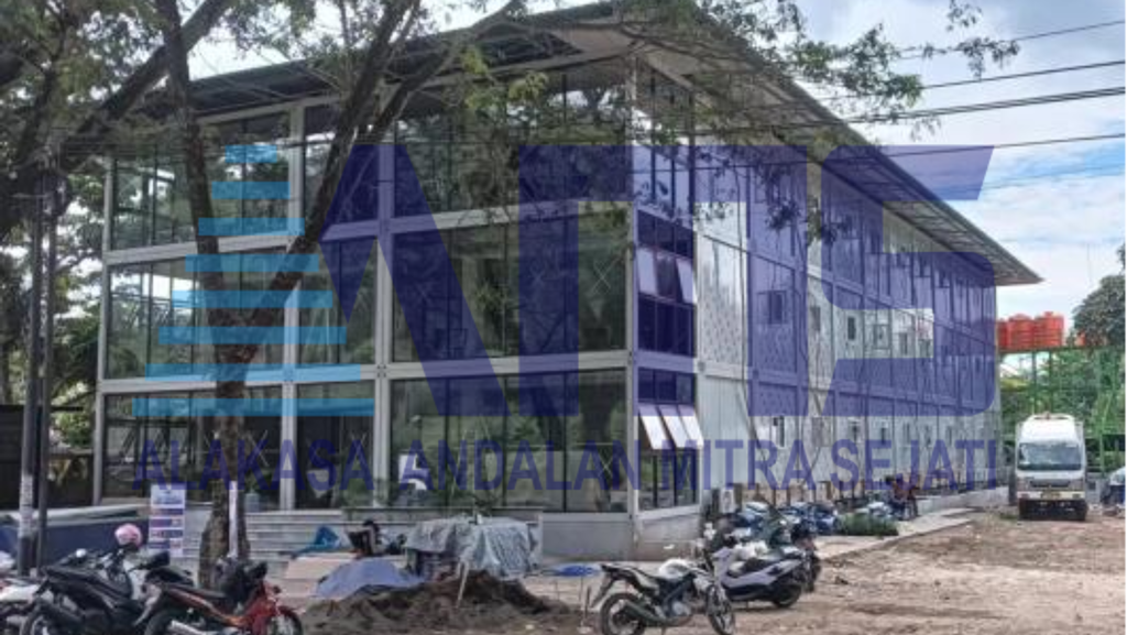 ALAKASA telah membangun sebuah kantor Marketing salah satu developer termuka di Indonesia yang berlokasi di Kertajati. Bangunan ini menggunakan tipe Detachable Flat Pack Container House dua lantai, dimana salah satu dinding sandwich panel diubah menjadi dinding kaca, dan dilantai dua ditambahkan Balkon sehingga tampilan Kantor Marketing lebih menarik.