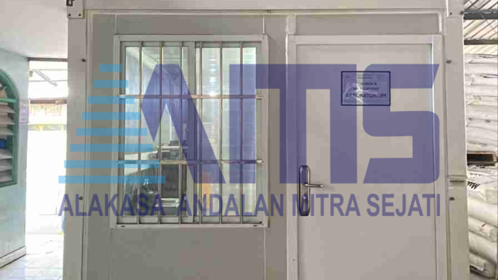 Laboratorium ini menggunakan tipe Foldable Container House. Dengan proses kontruksi yang cepat dan mudah, bangunan ini digunakan dengan nyaman dan aman bagi para pekerjanya untuk proses pengecekan barang kemasan.