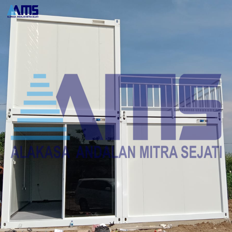 ALAKASA telah membangun sebuah kantor Marketing salah satu developer termuka di Indonesia yang berlokasi di Kertajati. Bangunan ini menggunakan tipe Detachable Flat Pack Container House dua lantai, dimana salah satu dinding sandwich panel diubah menjadi dinding kaca, dan dilantai dua ditambahkan Balkon sehingga tampilan Kantor Marketing lebih menarik.